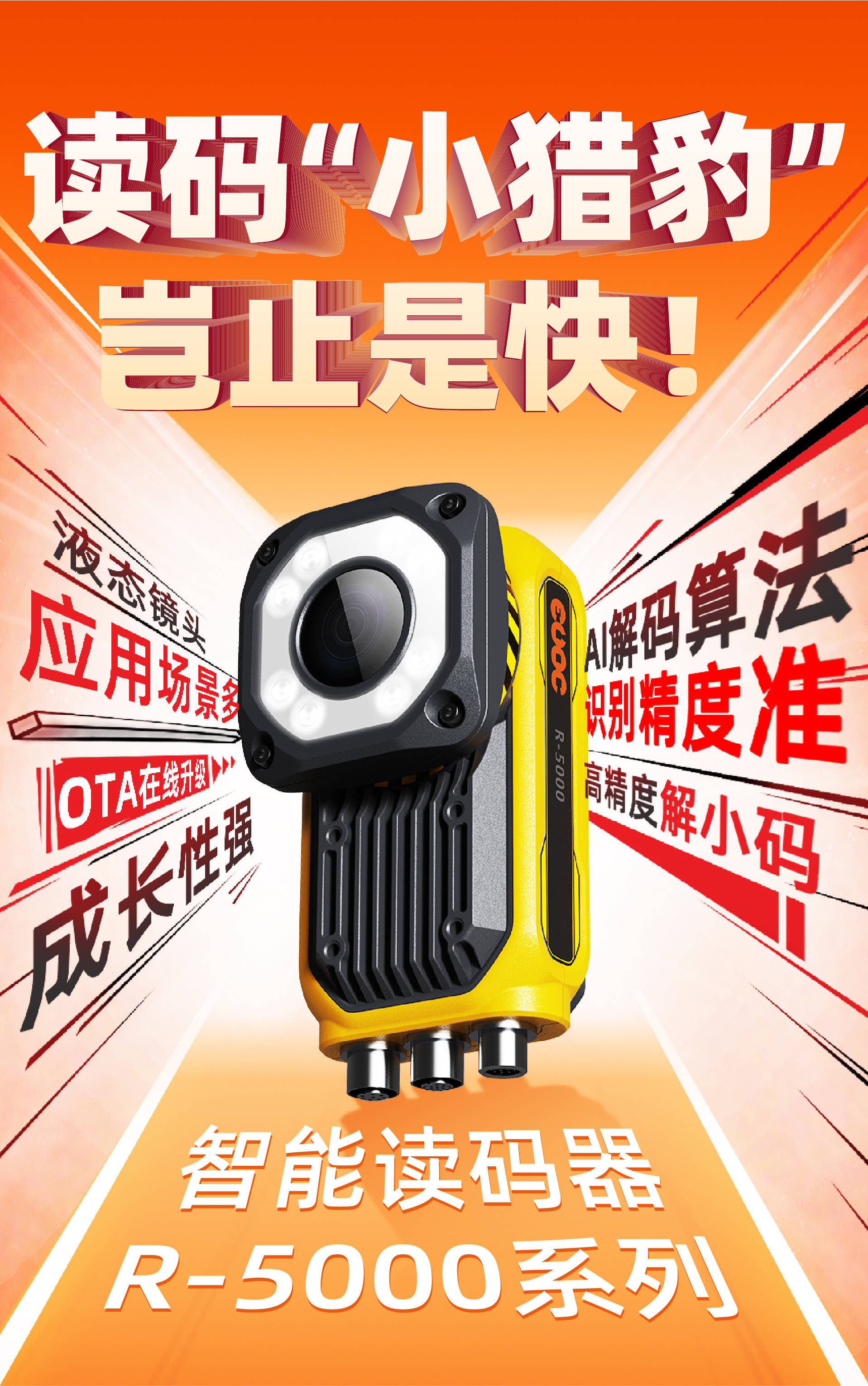 近日,尊龙集团全新推出智能读码器R-5000系列,搭载液态镜头、深度学习算法,自动变焦速度与解码速度均有显著提高。R-5000具有应用场景多、识别精度准、成长性强等特性,能够快速精准读码,可为用户提供超强性能的读码解决方案。